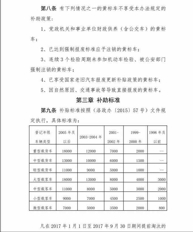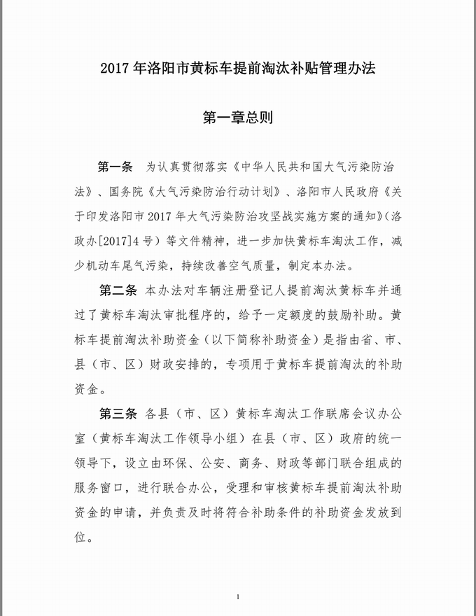 2017年洛陽市黃標車提前淘汰補貼管理辦法