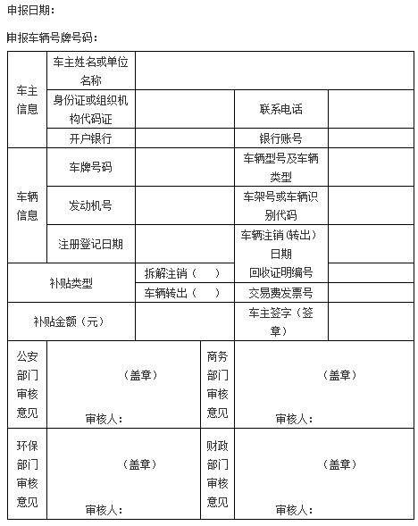 1.《 縣(市、區(qū))老舊車淘汰補貼資金申報表》;